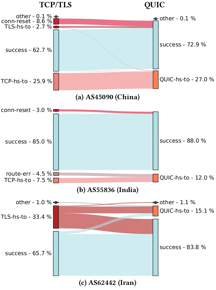Figure 2 shows the correlation between HTTPS and HTTP/3 requests in specific networks in China, India and Iran.